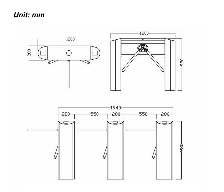 The turnstile provides a basic tripod to control access smoothly and effectively by basic operation, and also prevent illegal in and out.